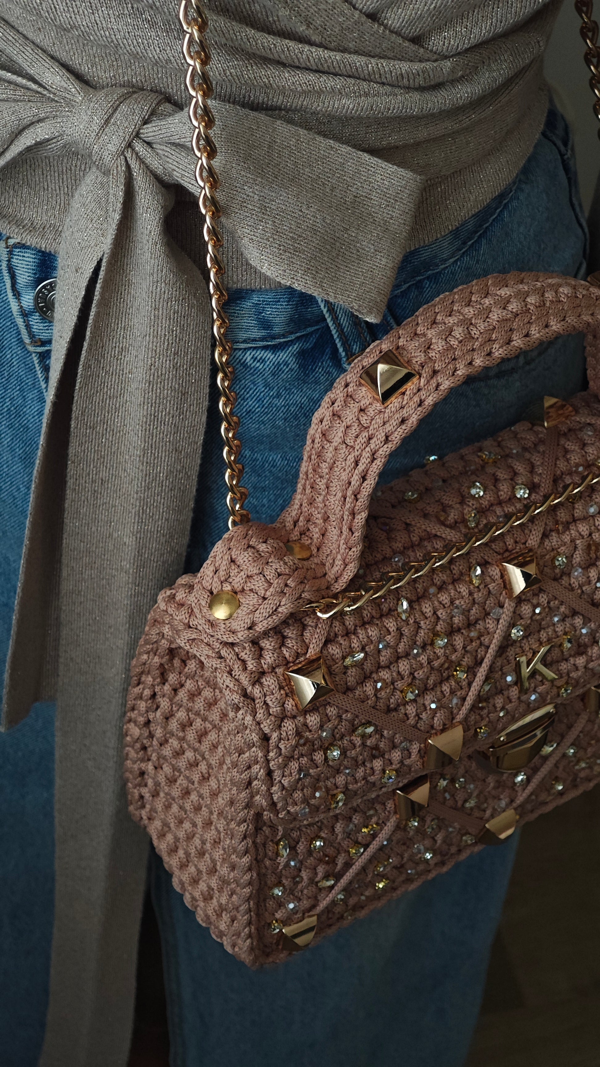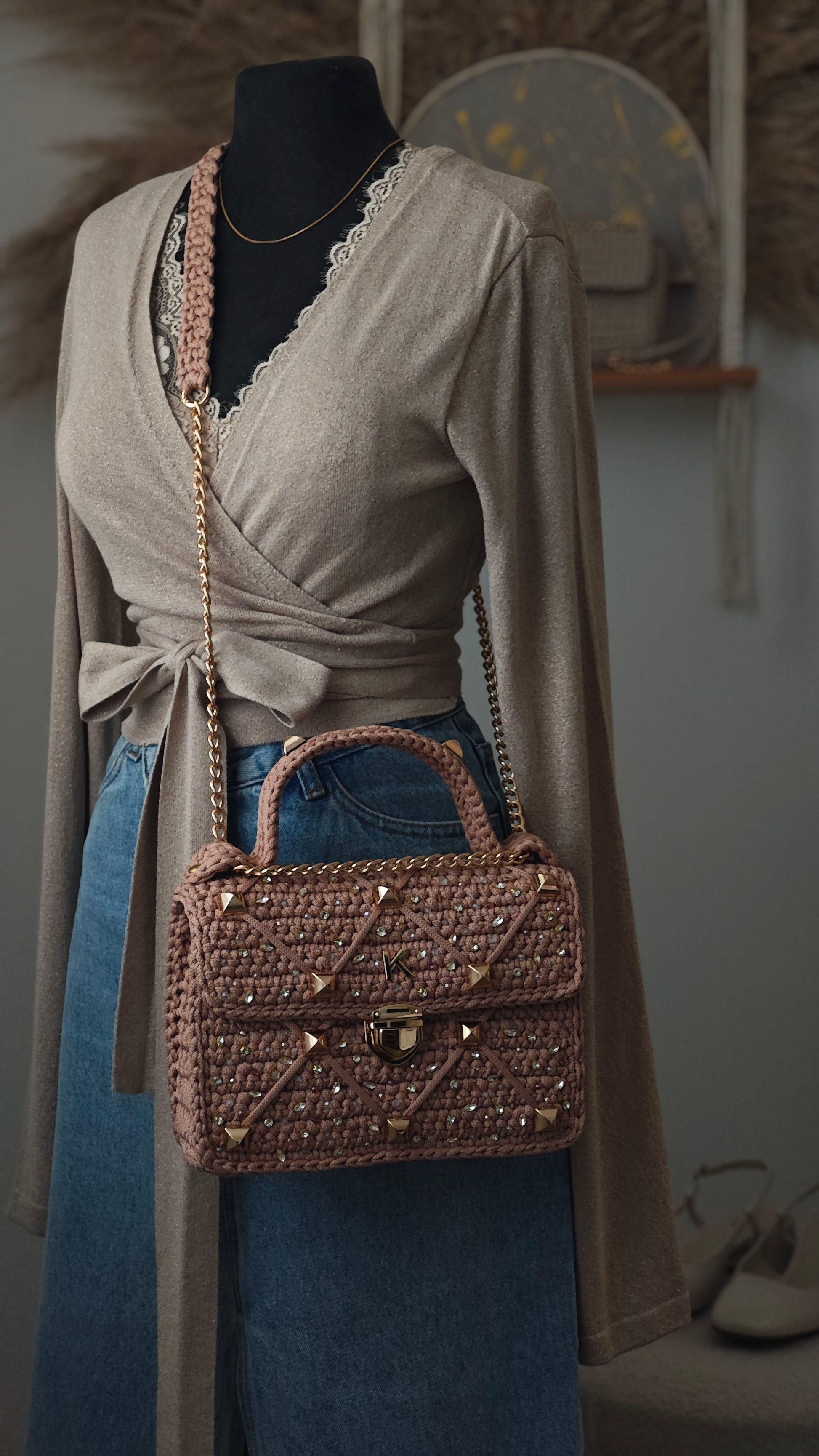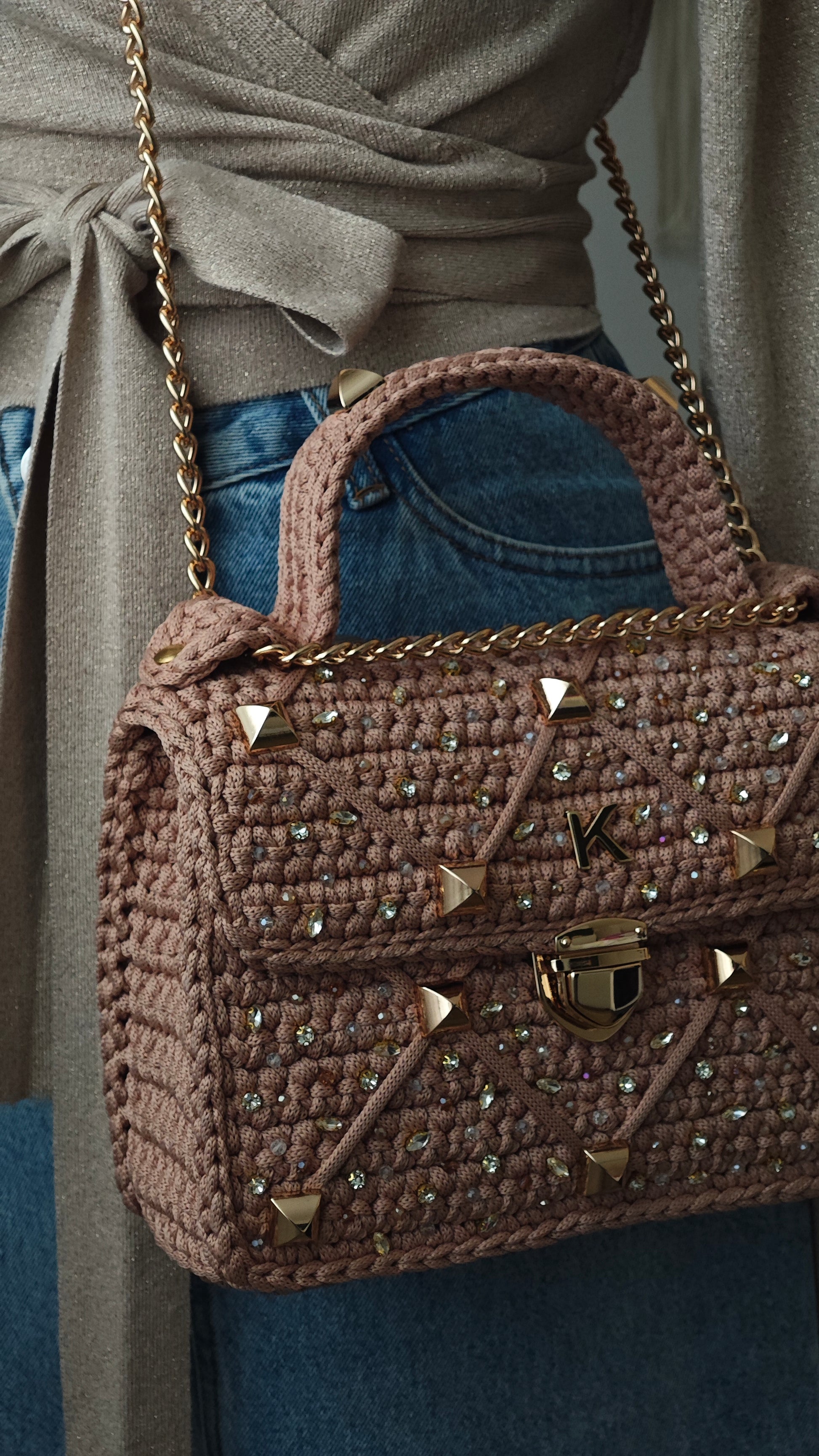 Perfekt für jeden Anlass – Diese gehäkelte Tasche kombiniert Handwerkskunst und Glamour auf einzigartige Weise. Ein Must-have für alle, die Stil und Funktionalität schätzen.