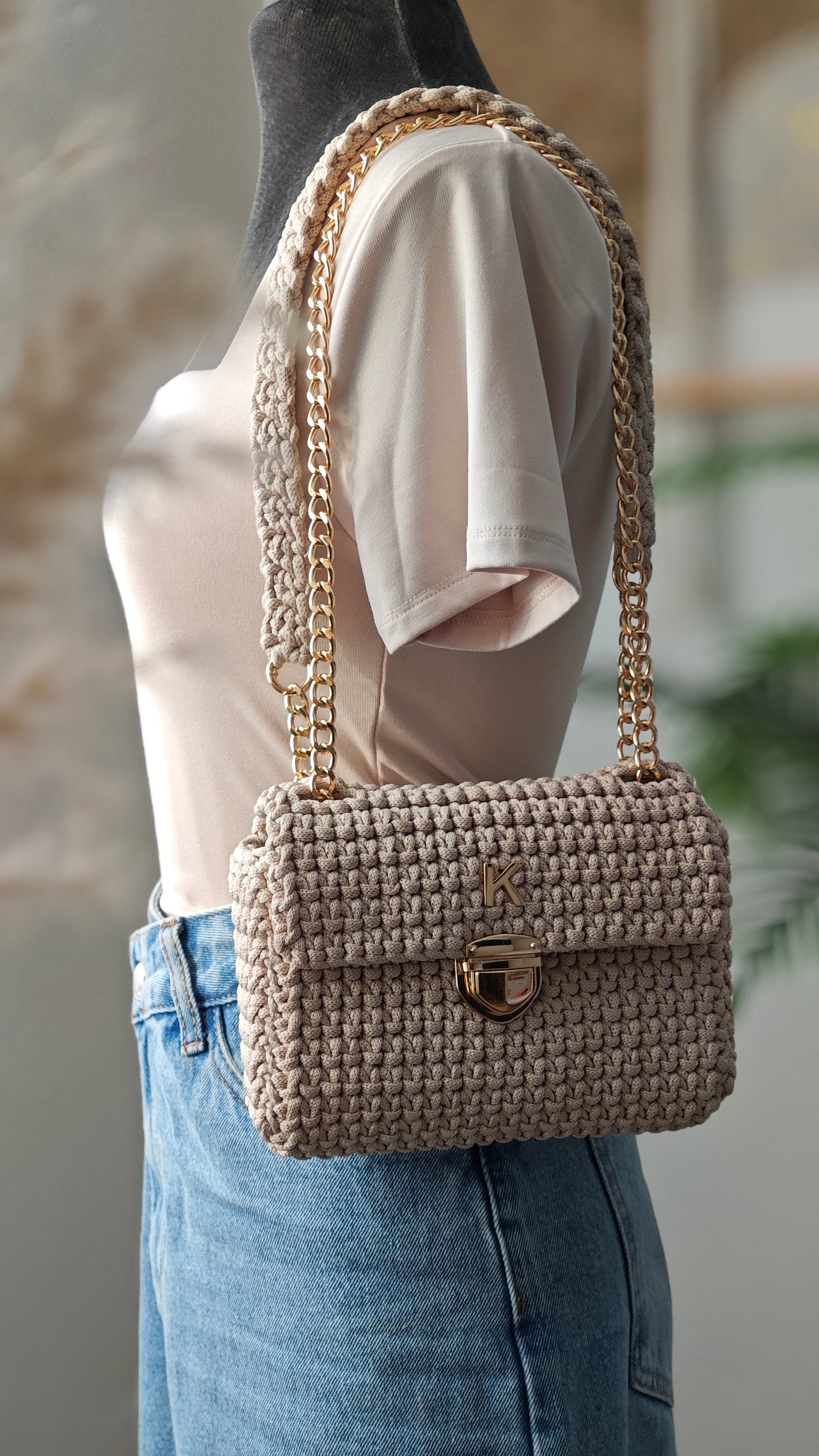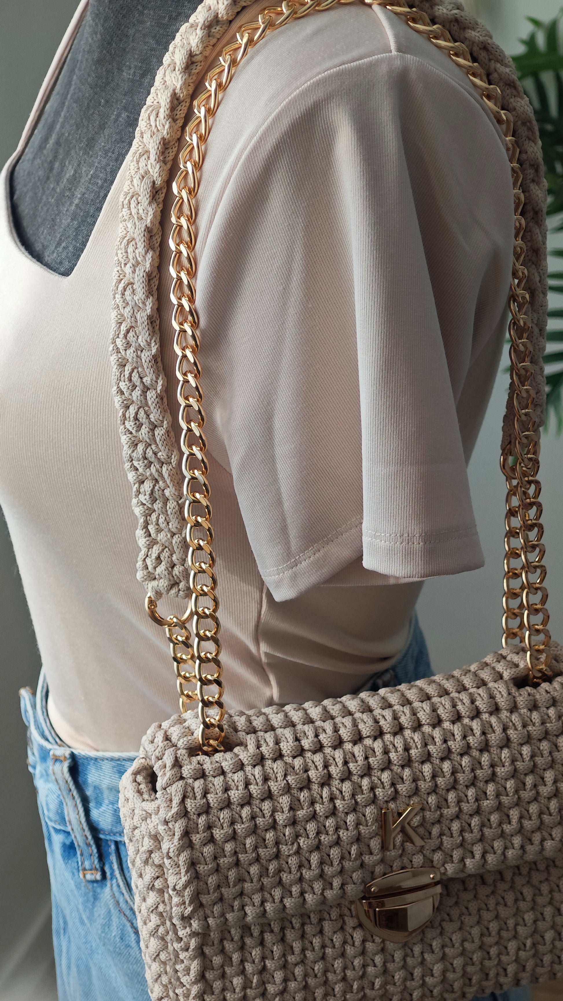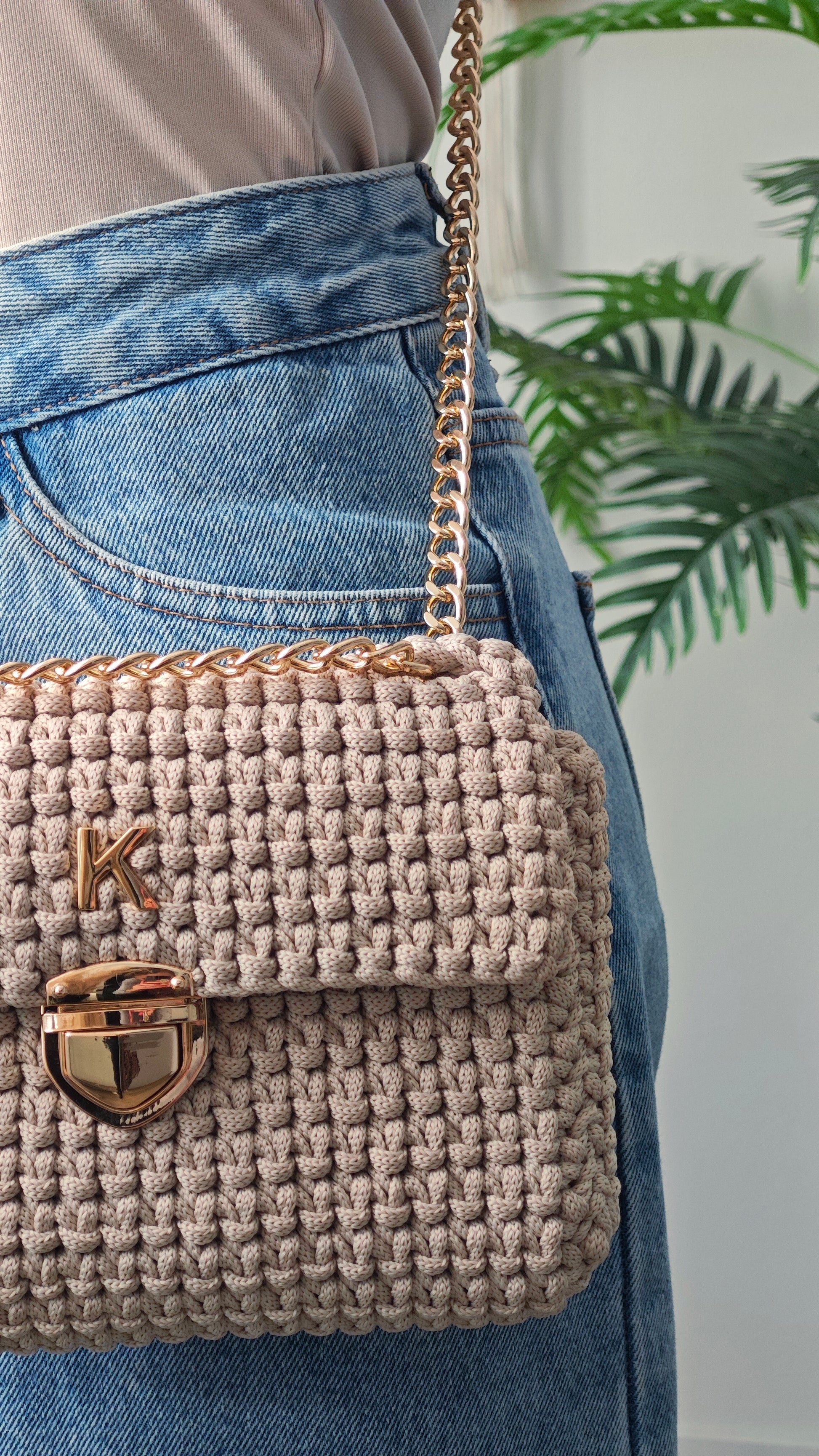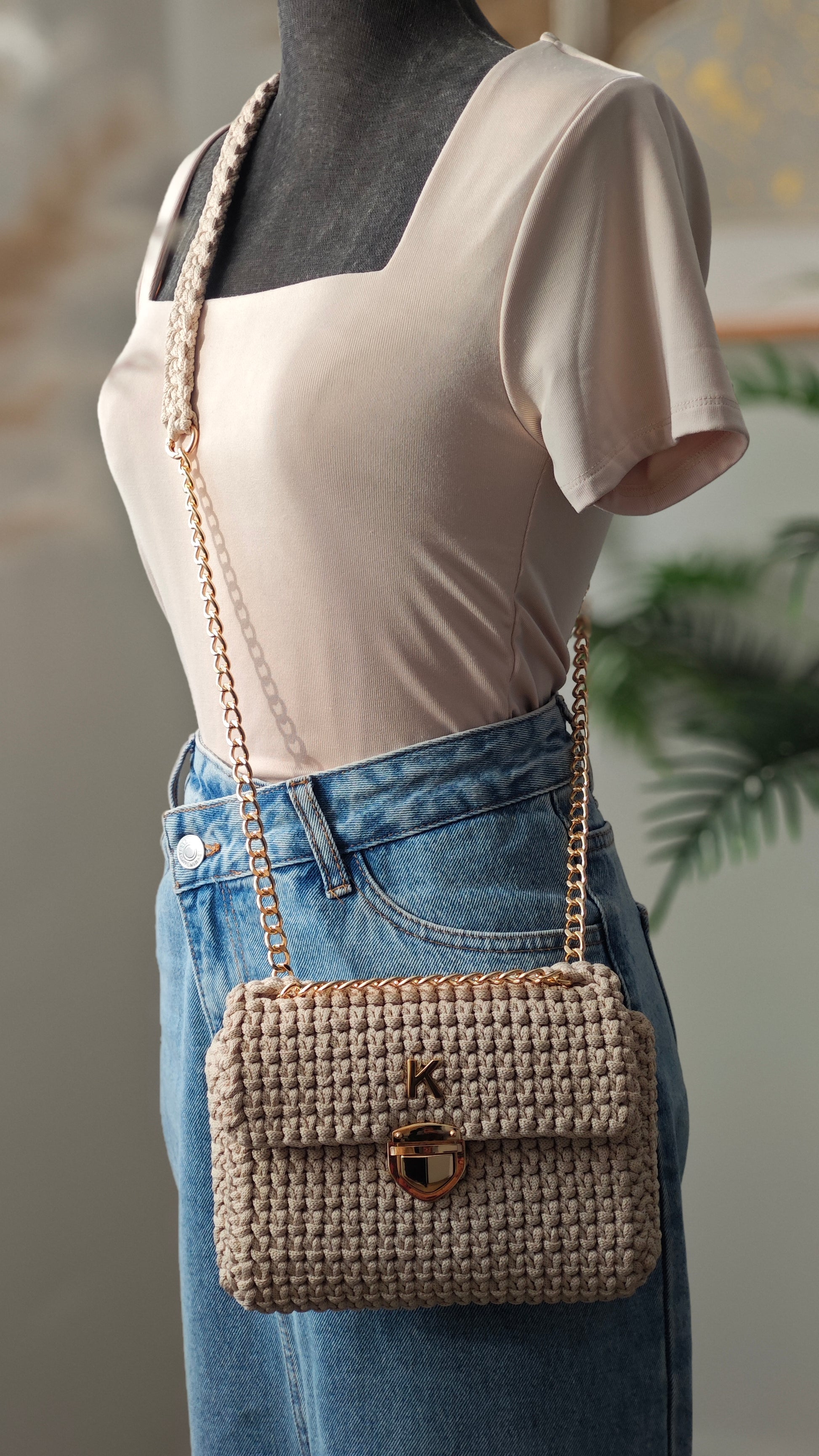 Diese handgefertigte Tasche aus hochwertigem Polyestergarn ist der perfekte Alltagsbegleiter. Mit ihrem gehäkelten, leicht verstellbaren Gurt kann sie flexibel als Crossbody oder über die Schulter getragen werden. Kompakt, stilvoll und vielseitig – ideal für unterwegs!