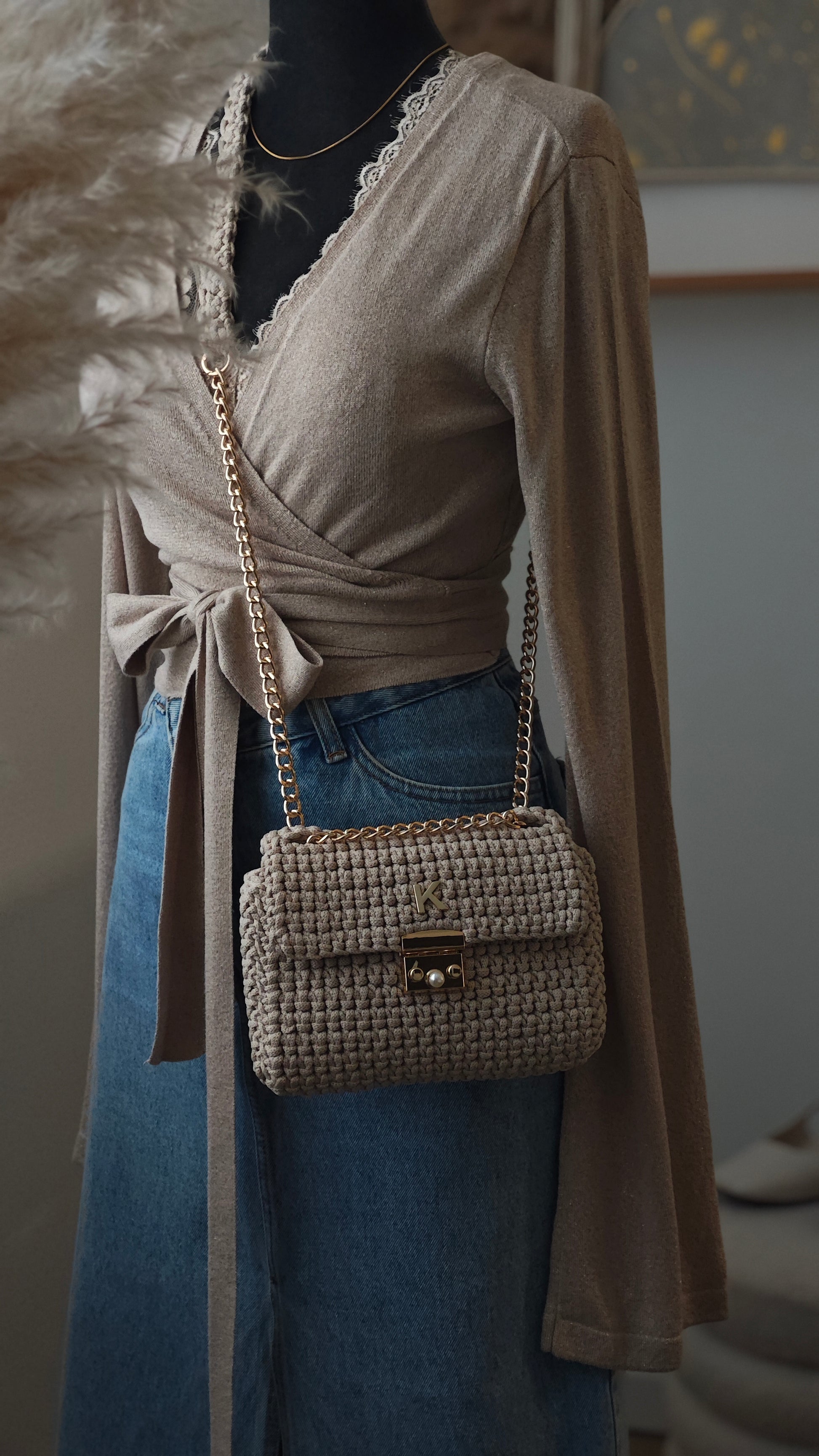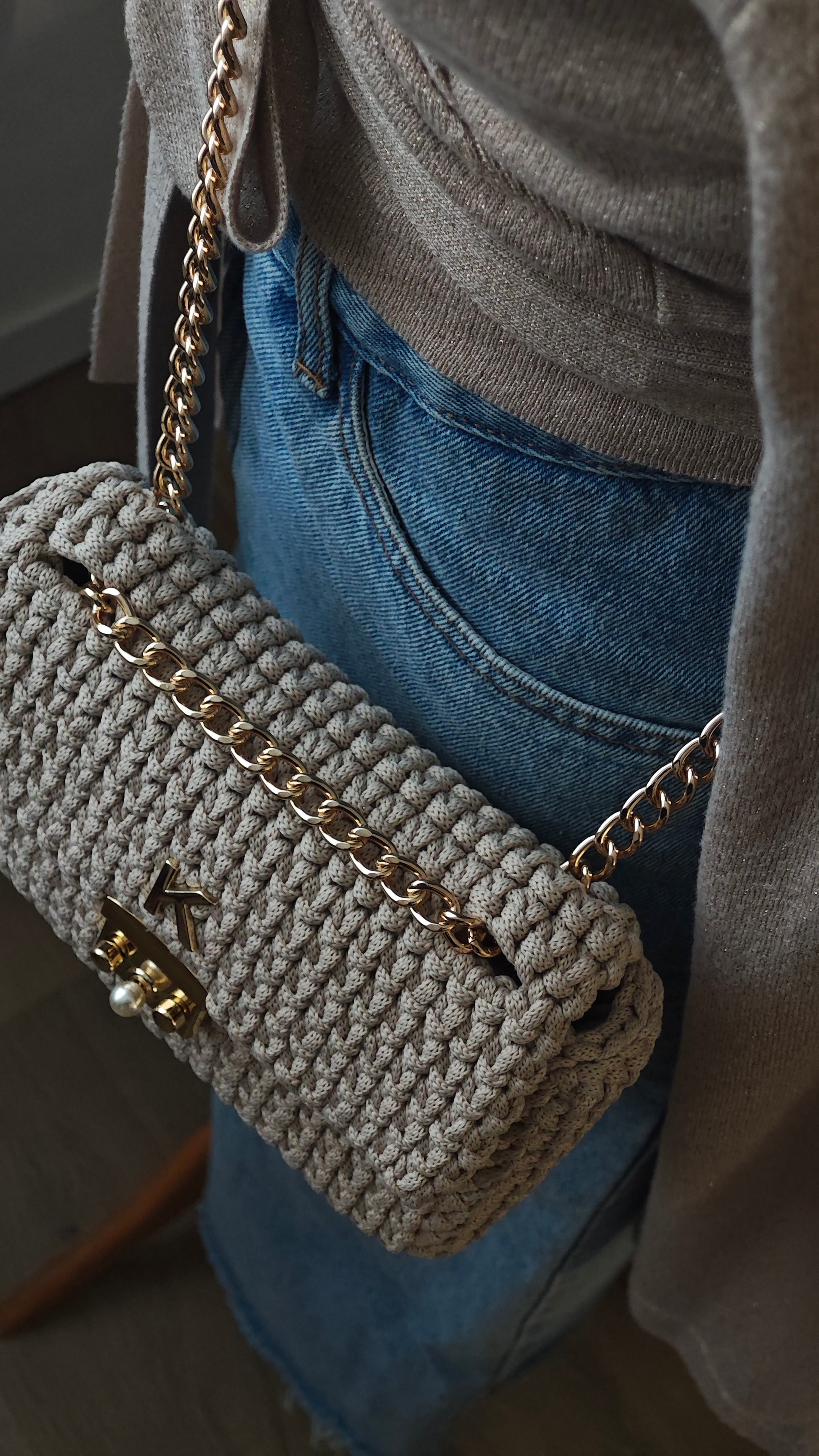 Diese handgefertigte Tasche aus hochwertigem Polyestergarn ist der perfekte Alltagsbegleiter. Mit ihrem gehäkelten, leicht verstellbaren Gurt kann sie flexibel als Crossbody oder über die Schulter getragen werden. Kompakt, stilvoll und vielseitig – ideal für unterwegs!