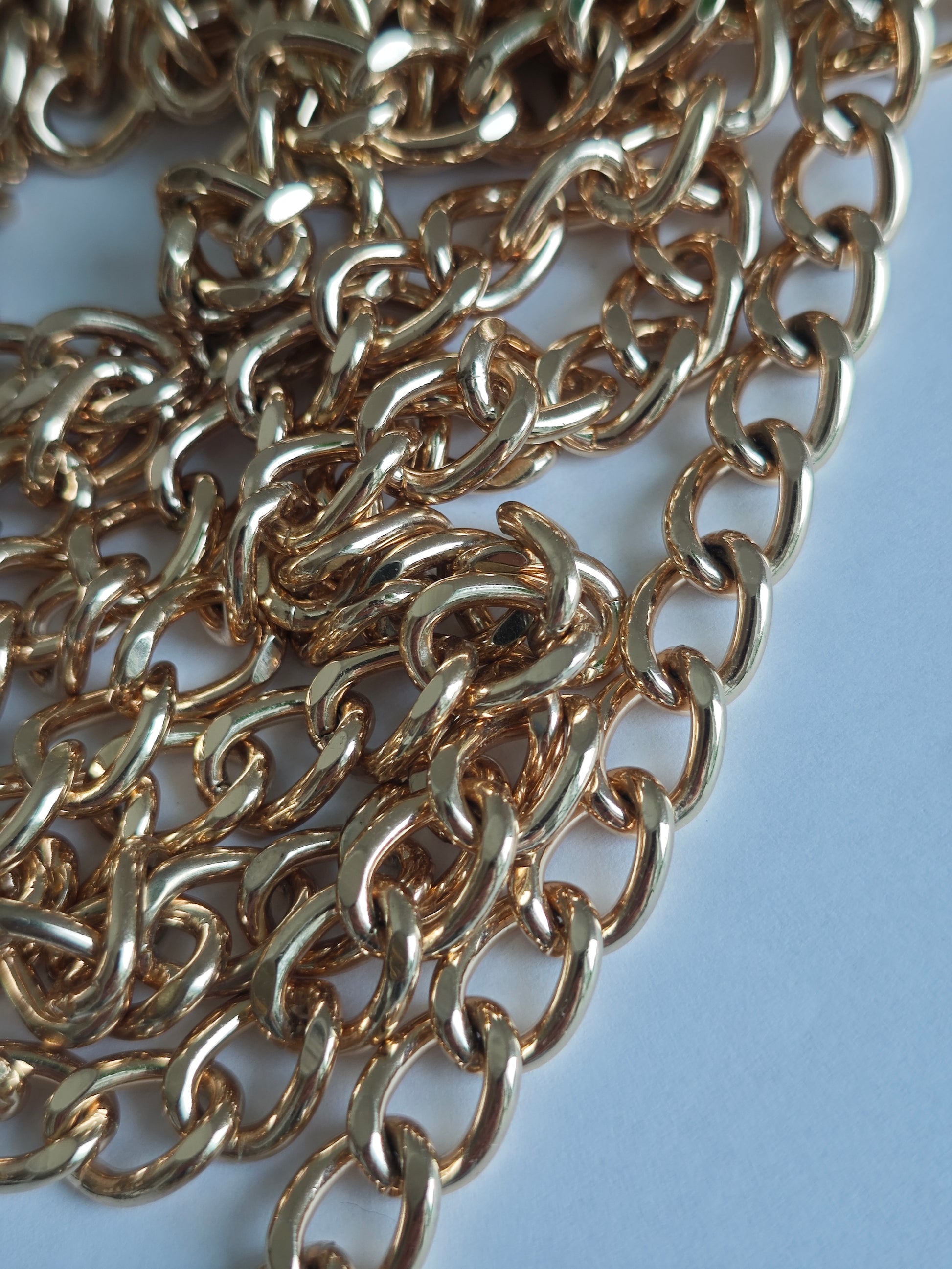 Goldene Kette mit offenen Ösen – ideal zum Verlängern von Taschengurten