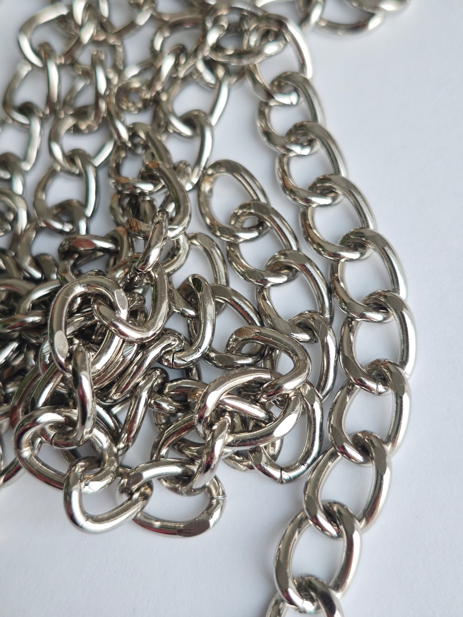 Edle, grobgliedrige Kette in Silberoptik – perfekt geeignet zum Verlängern von gehäkelten Taschengurten oder als stilvolles Detail an handgefertigten Taschen.