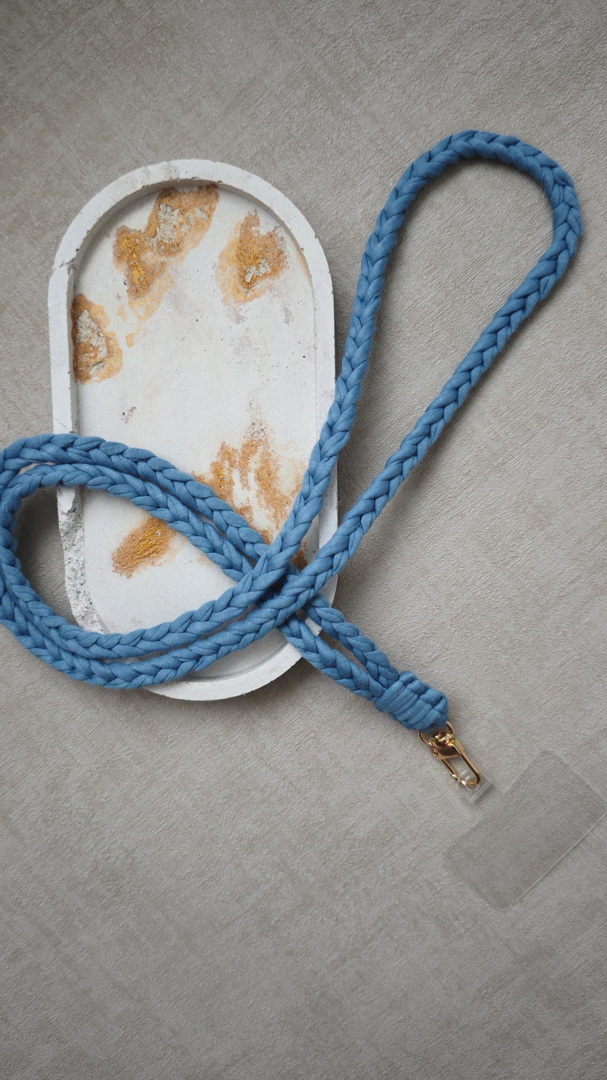 Handykette aus Textilgarn mit Silikon-Patch.